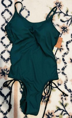 This green one-piece has become my go-to swimsuit! The side ruching creates such a flattering silhouette, and the back design perfectly frames my spine tattoo. The color is rich and sophisticated while still feeling fun for summer. I've been reaching for this one constantly since it's both comfortable and stylish!