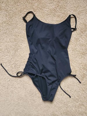 Take on the pool or beach in chic style with this Curvy Fit Ribbed Adjustable Drawstring One-Piece Swimsuit from Shade & Shore™. Made from recycled polyester fabric with spandex and full lining for flexible comfort, this ribbed swimsuit is tailored in a high-leg silhouette with ties down the sides for adjustable ruching and texture. The buckled shoulder straps provide a personalized fit, and the medium-coverage design offers confident wear in and out of the water. Plus, sizes XS–XL offer extra room in the hips and seat and a smaller waistline to eliminate gaps to fit natural curves.