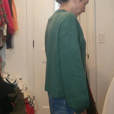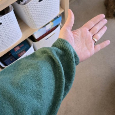 Love the style of this sweater - slitghtly oversized and cozy. Wore it on Christmas morning with red satin pj pants, and it was perfect! Unfortunately, after a few wears and washes, the matereial is not holding up well. There is some pilling and it is getting a bit strecthed out.