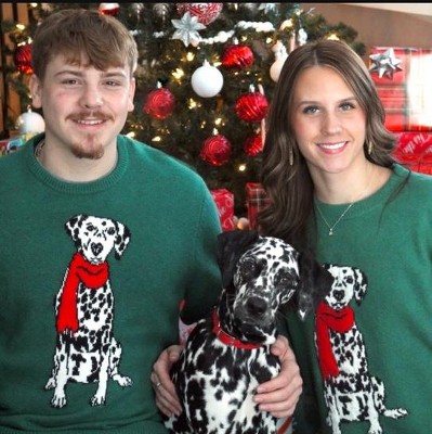 [This review was collected as part of a promotion.] This Dalmatian holiday sweater was a great matching set for my family. My boys loved it and my daughter. I loved the forest green color. I’m wearing a size extra large, which is my normal size and it fit very well. It was super comfortable and a great fit. Would recommend for anyone that’s looking.