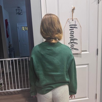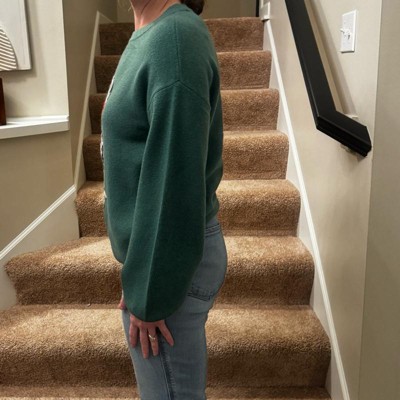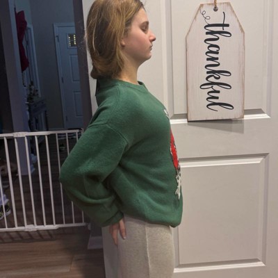[This review was collected as part of a promotion.] My 12-year-old daughter is pictured here wearing a size extra small, which is her true size fit, and overall this fit her perfectly both in the length and and the width. It was also very comfortable in the arm length which is typically a concern as she is petite this was super cute paired with a pair of jeans or even a pair of lounge pants for the perfect holiday. Look we love how soft and comfortable this is it is well-made.