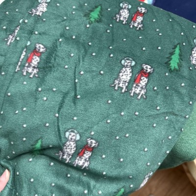 Slip into comfort with these Dalmatian microfleece pajama pants. Perfect for adding some festive fun, these green color pajama bottoms showcase a playful dog pattern. Designed for they feature full waistband elastic for easy wear, without any pockets for a sleek look. Ideal for keeping cozy, the lightweight fabric ensures comfort, while the ankle-length design provides a snug fit, making it a delightful choice for the holiday season.