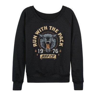 Women's Daria Unimpressed Lightweight French Terry Wide Neck Long Sleeve Graphic Shirt - Black - Medium