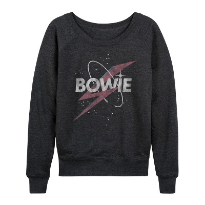 Women's David Bowie David Bowie Rebel Lightweight French Terry Wide Neck Long Sleeve Graphic Shirt - Black - Small