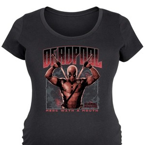 Deadpool - Metal - Women's Maternity Scoop Neck Graphic T-Shirt - Unleash your inner antihero with our officially licensed Deadpool graphic apparel collection! Packed with humor, chaos, and irreverence, this line features bold, eye-catching designs inspired by the wisecracking mercenary himself. From Deadpool's iconic red and black suit to his snarky one-liners and action-packed moments, each piece captures the wild, unpredictable nature of Marvel's most beloved and unpredictable character. Whether it's a graphic tee, a cozy hoodie, or fun accessories, this collection offers premium comfort and a touch of Deadpool’s signature wit. Get ready to break the fourth wall and showcase your love for the "Merc with a Mouth" in style!