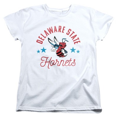 • DELAWARE STATE UNIVERSITY HORNETS WOMEN'S T SHIRT - Our women's t-shirt looks stylish and is great for a casual party, costume party, theme party, streetwear or simple loungewear to enjoy in the comfort of your home