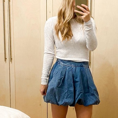 The denim is surprisingly soft with just enough structure to keep that adorable bubble shape without feeling poofy or childish. It hits at just the right length—flattering but still comfy! Pairs well with the matching bubble bomber. -@FeelingPrettyTargeted