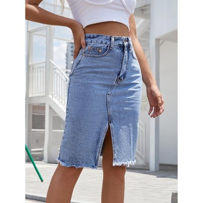 This denim midi skirt features a chic high slit design that adds a modern edge and allows for easy movement. The mid-calf length is universally flattering, making it a versatile piece for various occasions. – Effortless Style 🌟