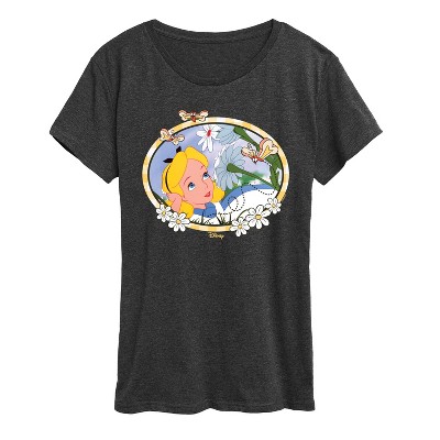 Disney - Alice in Wonderland - Alice Daisies - Women's Short Sleeve Graphic T-Shirt - Add a touch of magic to your wardrobe with this graphic apparel featuring iconic Disney designs. Showcasing beloved characters and classic imagery, each piece combines nostalgic charm with modern style—perfect for Disney fans of all ages. Whether you're headed to the parks or just adding whimsy to your everyday look, these graphics bring the magic to life.
