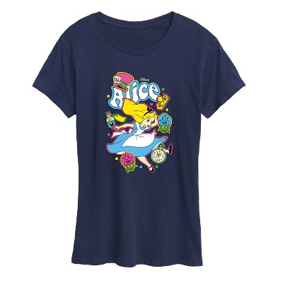 Women's Disney Alice in Wonderland Short Sleeve Graphic T-Shirt - Navy - Medium