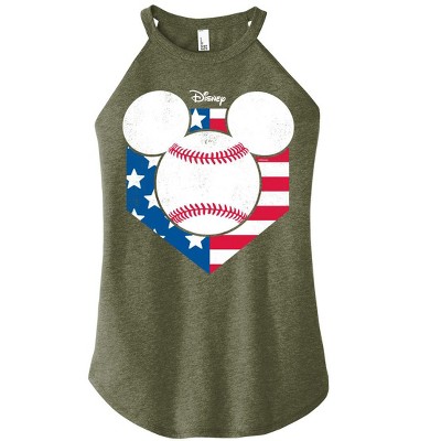 Women's Disney Americana Graphic High Neck Tank - Heather Military Green - Small