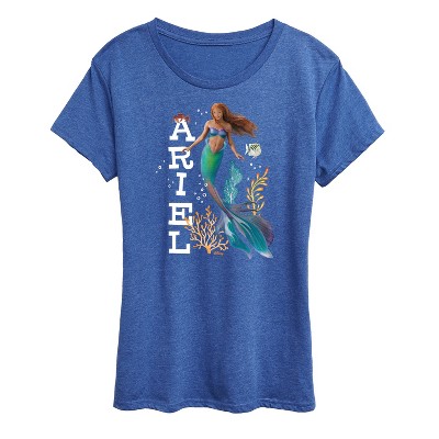 Women's Disney Ariel Short Sleeve Graphic T-Shirt - Heather Royal Blue - Small