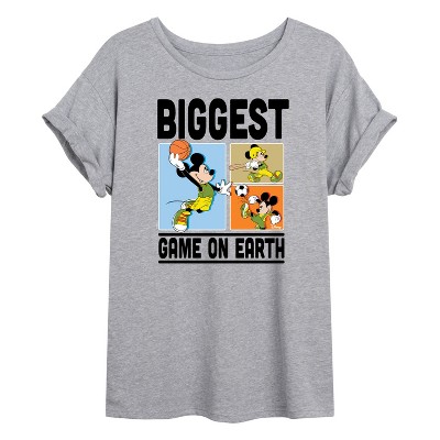 Disney - Biggest Game On Earth - Women's Short Sleeve Graphic T-Shirt - Add a touch of magic to your wardrobe with this graphic apparel featuring iconic Disney designs. Showcasing beloved characters and classic imagery, each piece combines nostalgic charm with modern style—perfect for Disney fans of all ages. Whether you're headed to the parks or just adding whimsy to your everyday look, these graphics bring the magic to life.