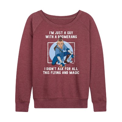 Women's Disney Boo To You Lightweight French Terry Wide Neck Long Sleeve Graphic Shirt - Heather Maroon - Small