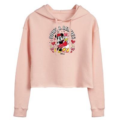 Women's Disney Bows And Besties Cropped Graphic Hoodie - Blush - Small