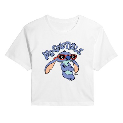 Women's Lilo & Stitch Calm Down Cropped Graphic T-Shirt - White - X-Large