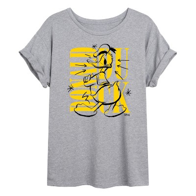Disney - Donald Graffiti - Women's Short Sleeve Graphic T-Shirt - Add a touch of magic to your wardrobe with this graphic apparel featuring iconic Disney designs. Showcasing beloved characters and classic imagery, each piece combines nostalgic charm with modern style—perfect for Disney fans of all ages. Whether you're headed to the parks or just adding whimsy to your everyday look, these graphics bring the magic to life.