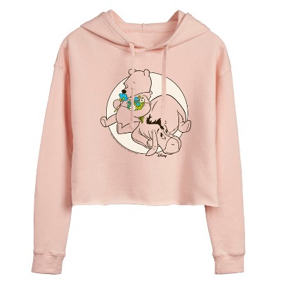 Women's Disney Eeyore And Butterfly Cropped Graphic Hoodie - Blush - Large