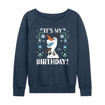 Disney Frozen - Elsa, Olaf & Anna Birthday Celebration - Women's Lightweight French Terry Long Sleeve Shirt - Add a touch of magic to your wardrobe with this graphic apparel featuring iconic Disney designs. Showcasing beloved characters and classic imagery, each piece combines nostalgic charm with modern style—perfect for Disney fans of all ages. Whether you're headed to the parks or just adding whimsy to your everyday look, these graphics bring the magic to life.
