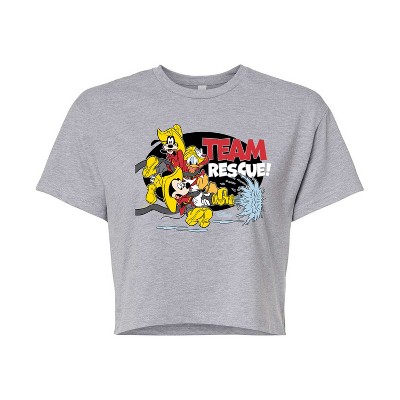 Disney - Firefighter Mickey & Friends - To The Rescue - Juniors Cropped Cotton Blend T-Shirt - Add a touch of magic to your wardrobe with this graphic apparel featuring iconic Disney designs. Showcasing beloved characters and classic imagery, each piece combines nostalgic charm with modern style—perfect for Disney fans of all ages. Whether you're headed to the parks or just adding whimsy to your everyday look, these graphics bring the magic to life.