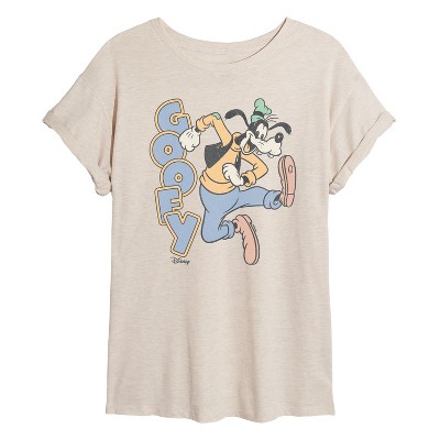 Women's Disney Goofy Art Of Skiing Oversized Graphic T-Shirt - Birch - Medium