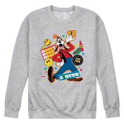 Women's Disney Goofy Grid Lightweight French Terry Wide Neck Long Sleeve Graphic Shirt - Heather Charcoal - X-Large