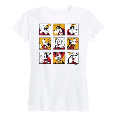 Mickey & Friends - Goofy Grid - Women's Short Sleeve Graphic T-Shirt - Add a touch of magic to your wardrobe with this graphic apparel featuring iconic Disney designs. Showcasing beloved characters and classic imagery, each piece combines nostalgic charm with modern style—perfect for Disney fans of all ages. Whether you're headed to the parks or just adding whimsy to your everyday look, these graphics bring the magic to life.