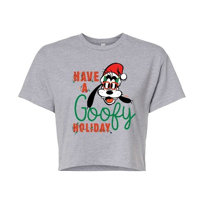 Women's Disney Goofy Leap Cropped Graphic T-Shirt - Heather Grey - 2 X-Large