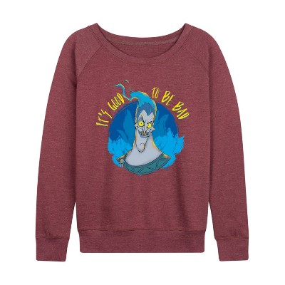 Women's Disney Hades Vapor Wave Lightweight French Terry Wide Neck Long Sleeve Graphic Shirt - Heather Maroon - X-Large