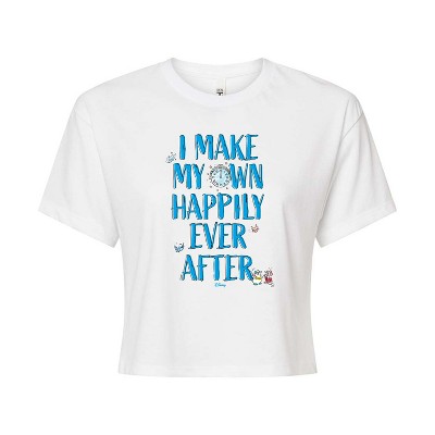 Disney - Happily Ever After Ariel - Juniors Cropped Cotton Blend T-Shirt - Add a touch of magic to your wardrobe with this graphic apparel featuring iconic Disney designs. Showcasing beloved characters and classic imagery, each piece combines nostalgic charm with modern style—perfect for Disney fans of all ages. Whether you're headed to the parks or just adding whimsy to your everyday look, these graphics bring the magic to life.
