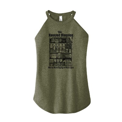 Women's Disney Haunted Mansion Parks Attraction Graphic High Neck Tank - Heather Military Green - Medium