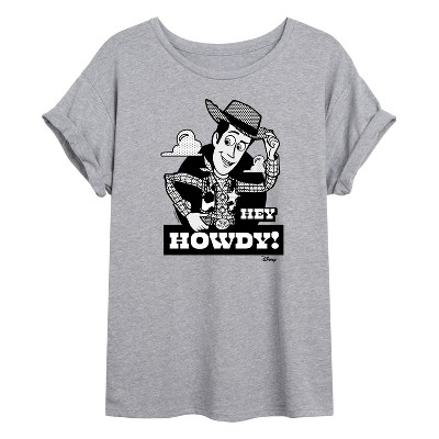 Toy Story - Hey Howdy - Juniors Cropped Cotton Blend T-Shirt - Add a touch of magic to your wardrobe with this graphic apparel featuring iconic Disney designs. Showcasing beloved characters and classic imagery, each piece combines nostalgic charm with modern style—perfect for Disney fans of all ages. Whether you're headed to the parks or just adding whimsy to your everyday look, these graphics bring the magic to life.