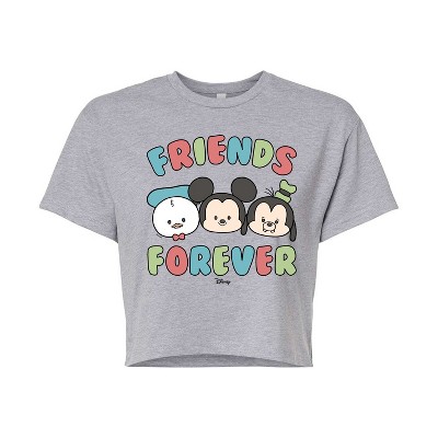 Women's Disney Hugs And Kisses Cropped Graphic T-Shirt - Heather Grey - Large