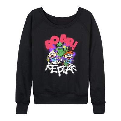 Women's - Disney - I'm Working on my Roar Lightweight French Terry Wide Neck Long Sleeve Graphic Shirt