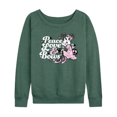Women's Disney Irresistible Lightweight French Terry Wide Neck Long Sleeve Graphic Shirt - Heather Juniper - Small