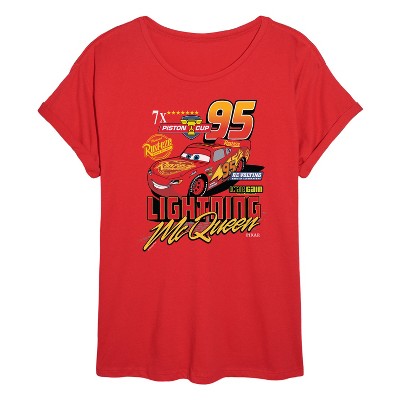 Disney's Cars - KACHOW 95 - Women's Short Sleeve Graphic T-Shirt - Hit the road in style with Cars graphic apparel, featuring bold and colorful designs of Lightning McQueen, Mater, and the entire racing crew. Each piece captures the high-speed excitement, friendship, and charm of Radiator Springs, bringing Pixar’s beloved automotive world to life. Perfect for fans of all ages who love adventure, racing, and heartwarming moments from the Cars universe, this collection adds fun and energy to any wardrobe.