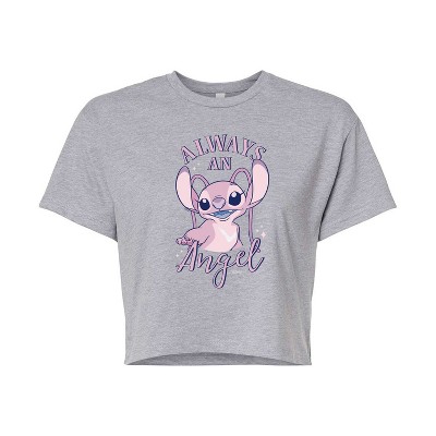 Disney - Lilo & Stitch - Angel & Stitch Share Kisses - Juniors Cropped Cotton Blend T-Shirt - Add a touch of magic to your wardrobe with this graphic apparel featuring iconic Disney designs. Showcasing beloved characters and classic imagery, each piece combines nostalgic charm with modern style—perfect for Disney fans of all ages. Whether you're headed to the parks or just adding whimsy to your everyday look, these graphics bring the magic to life.