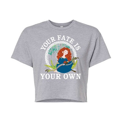 Disney Brave - Merida Aim High Bow & Arrow - Juniors Cropped Cotton Blend T-Shirt - Add a touch of magic to your wardrobe with this graphic apparel featuring iconic Disney designs. Showcasing beloved characters and classic imagery, each piece combines nostalgic charm with modern style—perfect for Disney fans of all ages. Whether you're headed to the parks or just adding whimsy to your everyday look, these graphics bring the magic to life.
