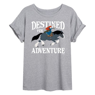 Disney Brave - Merida & Angus Destined for Adventure - Juniors Cropped Cotton Blend T-Shirt - Add a touch of magic to your wardrobe with this graphic apparel featuring iconic Disney designs. Showcasing beloved characters and classic imagery, each piece combines nostalgic charm with modern style—perfect for Disney fans of all ages. Whether you're headed to the parks or just adding whimsy to your everyday look, these graphics bring the magic to life.