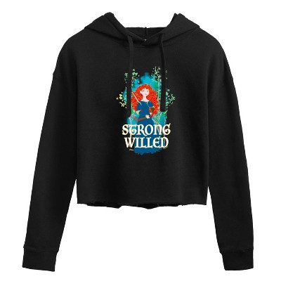 Women's Disney Merida Greatness Lies Within Cropped Graphic Hoodie - Black - Large