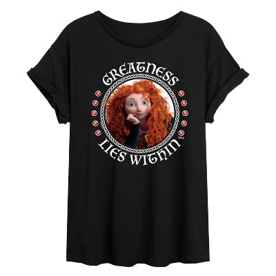 Disney Brave - Merida Greatness Lies Within - Juniors Cropped Cotton Blend T-Shirt - Add a touch of magic to your wardrobe with this graphic apparel featuring iconic Disney designs. Showcasing beloved characters and classic imagery, each piece combines nostalgic charm with modern style—perfect for Disney fans of all ages. Whether you're headed to the parks or just adding whimsy to your everyday look, these graphics bring the magic to life.