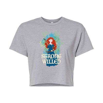 Women's Disney Merida Your Fate Is Your Own Cropped Graphic T-Shirt - Heather Grey - Medium