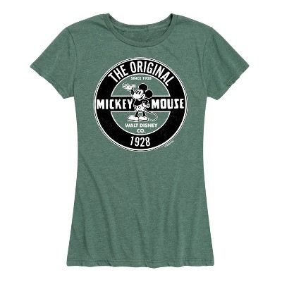 Women's Disney Mickey 28 Space Badge Short Sleeve Graphic T-Shirt - Heather Juniper - X-Large