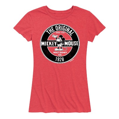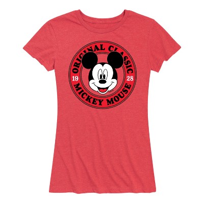 Women's Disney Mickey 28 Space Badge Short Sleeve Graphic T-Shirt - Heather Red - Large