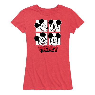 Women's Disney Mickey and Friends Grid Short Sleeve Graphic T-Shirt - Heather Red - Large