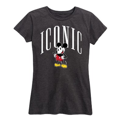 Women's Disney Mickey Color Block Short Sleeve Graphic T-Shirt - Heather Charcoal - Small