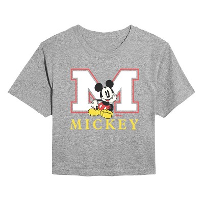 Women's Disney Mickey Ears Quilt Cropped Graphic T-Shirt - Heather Grey - Small