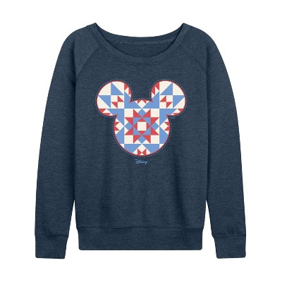 Women's Disney Mickey Ears Quilt Short Sleeve Graphic T-Shirt - Navy - X-Large