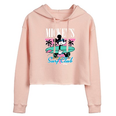 Women's Disney Mickey & Friends Cropped Graphic Hoodie - Blush - Small