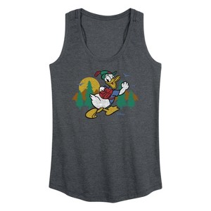 Disney - Mickey & Friends - Donald Duck Happily Going on a Hike - Women's Racerback Tank Top - Add a touch of magic to your wardrobe with this graphic apparel featuring iconic Disney designs. Showcasing beloved characters and classic imagery, each piece combines nostalgic charm with modern style—perfect for Disney fans of all ages. Whether you're headed to the parks or just adding whimsy to your everyday look, these graphics bring the magic to life.